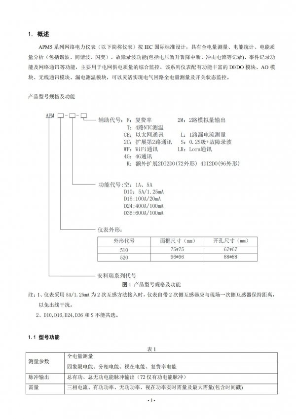 储能电表 APM520/FCE 具有分时段计量功能 485端口及TCP或 HTTP开放的传输协议
